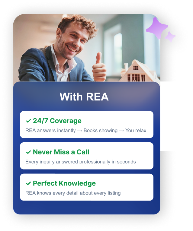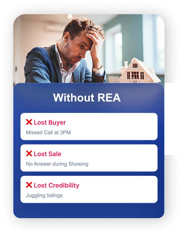 You have 5 active listings. Each gets 3-5 inquiry calls per week. You're in showings, closings, or off-hours for 40% of those calls. That means you're missing 6-10 calls per week.